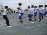 5月19日(月)今日から7時間目の練習が始まりました。19日月曜日は長縄、20日火曜日は生徒会種目の障害物リレーの練習をしました。長縄練習では、2年生が最高記録の22回を跳ぶと、それに負けじと3年生が30回跳び、最高学年としての意地を見せてくれました。本番の戦いが楽しみです。生徒会種目は、毎年恒例の障害物で、今年の種目はサッカーのドリブル、バスケのドリブル、縄跳び、ぐるぐるバット、麻袋跳び、二人三脚、ぽっくり、ワニ(新種目:四つ足でワニのように歩く)の8種目の中から学年によって6種目が決められています。1回だけの練習なので、どの生徒もルールを確認しながら全力で取り組んでいました。また、自分の学級を応援する声もたくさん出ていて、今年もみんなで盛り上げる運動会になりそうです。