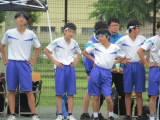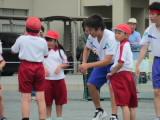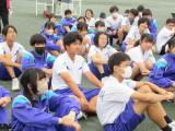 合同練習ではさすが中学生と思う場面がたくさんありました。練習開始の前からしっかり座席に並んで待機する姿や選抜リレーで整列場所を小学生に教えたりする姿がありました。