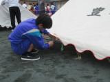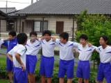 今日一番報告したいことがあります。それは、今日の昼休憩時の片付けのことです。子どもたちは演技が終了し、お弁当休憩のため一旦教室に戻ったのですが、その時にテントの片づけをしてくれている人たちがいました。お父さんがたが雨が降るので先に片付けてくれていると思ったら、なんと前芝中の卒業生4名でした。今年19歳になる卒業生4名がテントのシートを外して畳んだり、骨格の部分を解体して揃えたりしてくれました。おかげで中学生の片付けがとても楽になりました。こんな素敵な卒業生のいる前芝中学校は、やはり素晴らしい中学校です。4名の卒業生の皆さん、本当にありがとうございました。素敵なプレゼントをありがとうございました!!