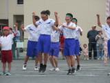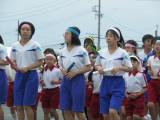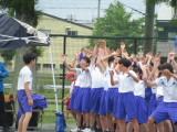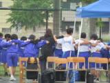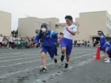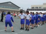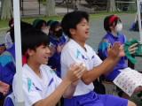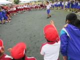 今年も中学生が小学生を、小学生が中学生を応援する姿をたくさん見ることができました。また、毎年恒例の保育園の遊戯「ジャングル ぐるぐる」を一緒に中学生が踊りました。今年は、礼儀正しい3年生らしく、トラックに沿って隣り同士がぶつからないように広がって並んで踊っていました。座席に座っている生徒もいなくて、ほとんど全員がかわいい園児の踊りを真似しながら楽しく踊る姿を見ることができました。すてきな伝統をつくってくれた卒業生の高校1年生も一緒に踊ってくれたそうです(笑)