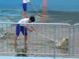 5月29日(木)の2時間目に1年生がプール掃除をしてくれました。大プールの底や壁面の掃除、シャワーの周りの掃除、小プールの仕上げなどを行いました。滑って汚れた水の中に入ってしまった生徒もいました。黙々と1時間デッキブラシで床をこすり続けたり、壁を1面すべてタワシでこすってきれいにしてくれている生徒もいて、感心しました。1年生もとてもがんばってくれました。残りは、来週小学生がやってくれるそうです。