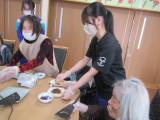 昨日と同じように、1年生は小規模多機能ホームでおやつ作りや飲み物の準備と配付などを行っていました。利用者のかたとのやり取りも上手になってきました。2年生は、デイサービスで多くの利用者さんを相手にゲームをしたり、おやつの準備や配膳を行ったりしていました。