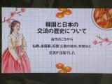 〇韓国のことをあまり知らなかったので、韓国の食文化や現代文化などを学ぶことができてよかったです。中学生は、日本と違い、受験でのプレッシャーやストレスが多いことを知りました。