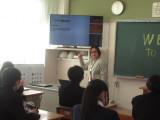 2年生の発表のあと、講師の先生が準備してきてくださったパワーポイント等の映像や音楽の資料を使って自分の国の様々な文化について教えていただきました。その国の学校事情、伝統文化(音楽やダンス)、貨幣、食文化など、子どもたちは初めて知ることばかりで、真剣な表情で講師の先生の話に耳を傾けていました。その後、質問や感想を交流して、あっという間の45分間が終わってしまいました。