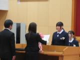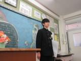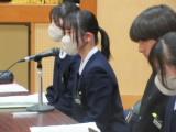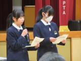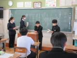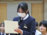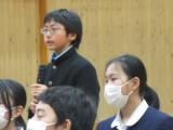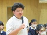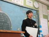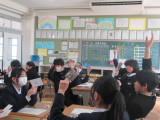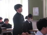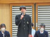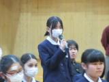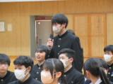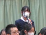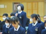 整美・ボランティア委員長と副委員長がボランティアの「校内規定」の見直しについて提案してくれました。「募金は1ボランにしてよいか」「毎週金曜日のあいさつ運動に2か月間参加したら1ボランでよいか」です。のべ21名の生徒が自分の考えを述べ、それらの意見をもとに校内規定の見直しを行うことができそうです。