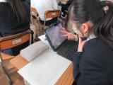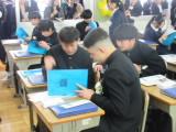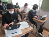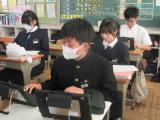 2年生の国語では、「描写を工夫して書こう」という作文の単元で、新しく導入されたIpadを使って授業をしていました。学校のテストや部活動、習い事や趣味など、それぞれが心が動いたできごとを切り取って作文を書きました。すでに書き終えていた作文は、以前のタブレットの中に保存してあり、その情報を取り出して、新しいIpadに保存することに苦戦していました。ただ、子どもたちの対応力はすさまじく、教員が提示した方法以外で自分なりにその方法を見つけ、友達や学級全体に共有し、教員のIpadに提出(送信)することまでできました。驚きです。