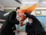 このメッセージに心が温かくなりました。昨年度の卒業生がつくってくれたどうたくんには、生徒や先生たちがつくった卒業証書や筒、第2ボタンで飾りつけをしました。また、3年生の卒業プロジェクトメンバーがつくった新しい「ミニどうたくん」や「どうた爺」もどうたくんと一緒に飾られました。