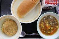 今日の給食は、ミルクロール、米粉コロッケ、ツナとやさいのソテー、ミートボールとやさいのスープ煮です。