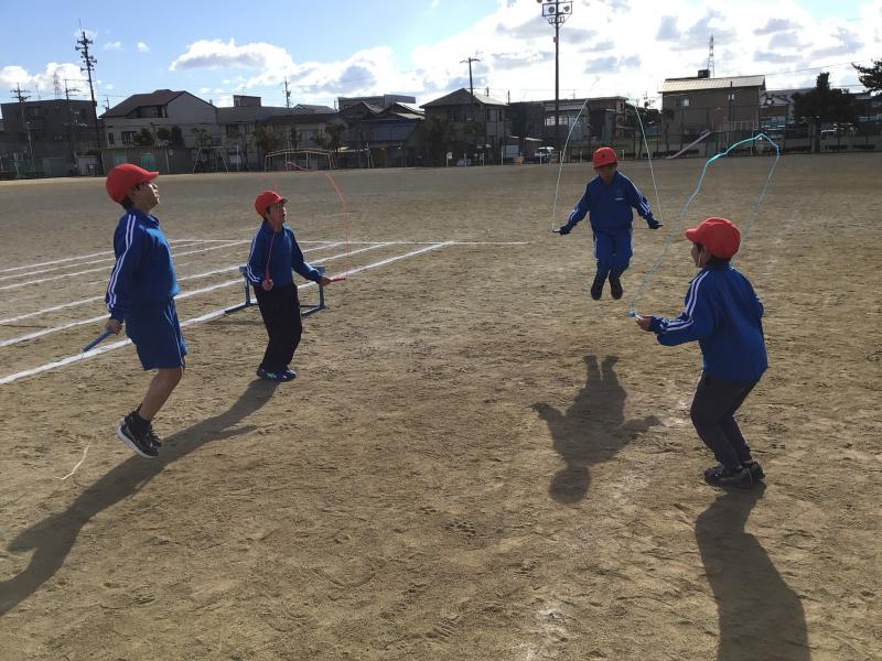 「とよはしっ子なわとびフェスティバル」の開催に伴い、体育の授業でなわとびを始めました。それぞれの目標に向かって、日々、練習しています。