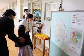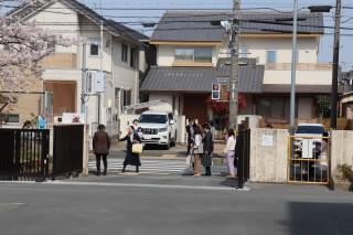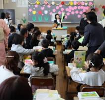 〈本校では新しく52名の新入生を迎えました。お家のかたとうれしそうに登校する姿が見られました。〉