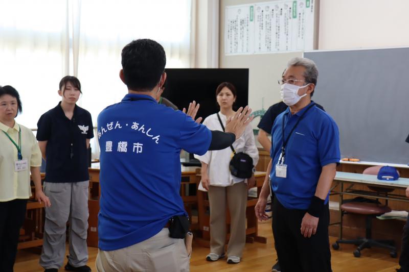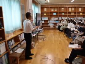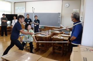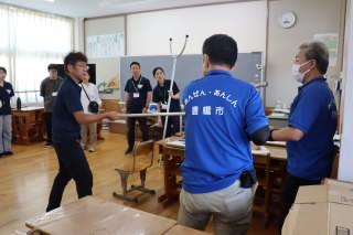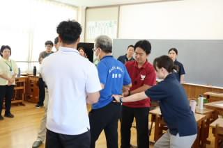 学校に不審者が侵入した際の対応の仕方について、市の生活安全課の方を招いて研修を行いました。