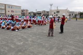 1時間目に避難訓練を行いました。今回は、地震の後、家庭科室から火がでた想定で行いました。そのため片方の階段が使えなくなり、地震の時の避難経路とかわりました。子どもたちは、校舎内では、走ることなく静かに運動場へ避難することができました。一部の階段が使えないこともあり、いつもより避難に少し時間がかかりましたが、状況に応じて避難経路がかわることを学びました。