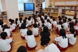 野外教育活動の説明会が5時間目に図書室で行われました。