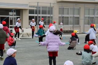 20分休みの時間を使って運動委員会企画がありました。縄跳びポイント講座や最後まで誰が残るか選手権などが行われました。参加したい児童が、学年ごとに集まり、運動委員会の説明を受けました。運動委員会の児童が上手に跳ぶポイントを教えながらお手本を見せてくれました。