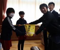 一覧へ 1. 1月14日 OSG 横断旗贈呈 投稿日時: 01/14 主担 児童の安全を守るために、学校へ横断旗を寄付してくれました。全児童が交通ルールに対しての意識を高め、安全に登下校できるようにしていきたいと思います。 代表で6年生の児童がOSGの方より横断旗を受け取りました。全校へは、児童朝会の際に紹介する予定です。