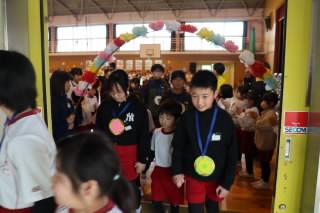 6年生退場では、1年生と手をつなぎ拍手の中、退場しました。