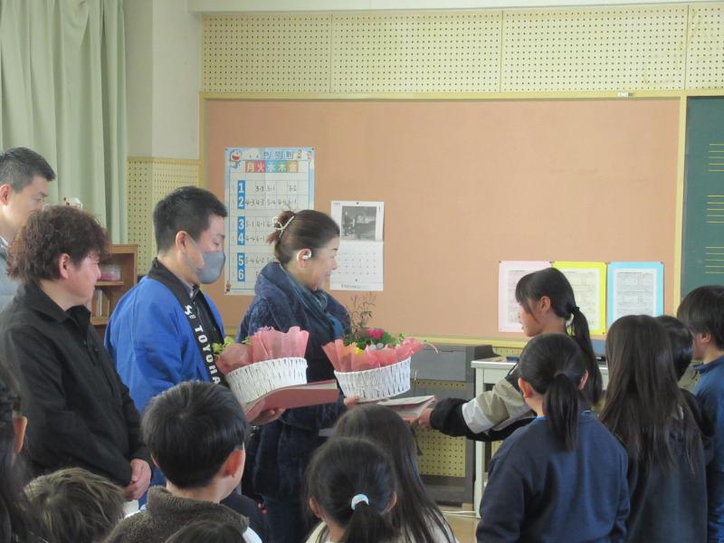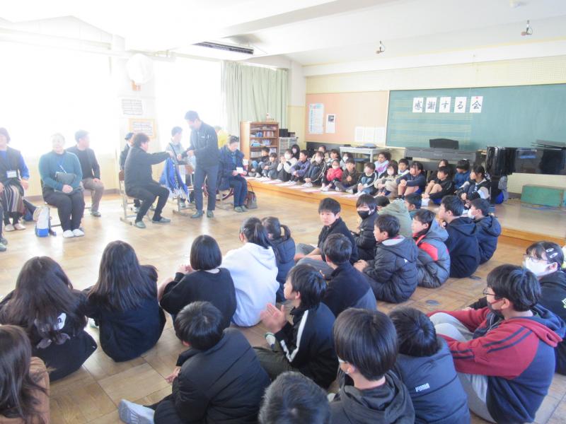 感染予防の観点から、本年度は音楽室で行い、全校児童は各教室にて中継で参加しました。多くの方々に支えられて本年度も幅の広い教育活動が行うことができました。
