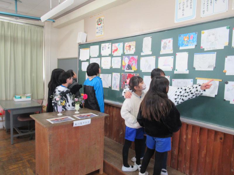 今週はクラブ展示を行っています。多くの児童が展示の見学をしていました。