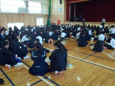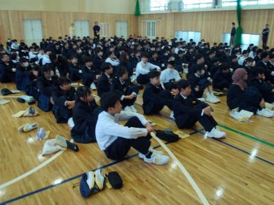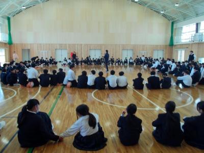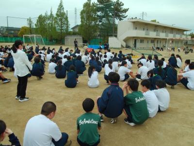 1年生は4月16日木曜日から行う野外教育活動に向けて、体育館で学年集会を行っていました。キャンプファイヤーの隊形確認や集合時の人員確認などに取り組んでいました。1年生とはいっても、6年間の小学校生活を終えている子供たちですから、動きもスムーズでした。今のところ、4月16日、17日の両日ともにくもり予報となっています。日中は汗ばみ、夜間は涼しさを感じることとなると思います。天気予報を確認しながら、服装、持ち物等の準備をお願いします。水分は、現地でペットボトルを4本配布する予定ですので、十分足りるものと考えています。
