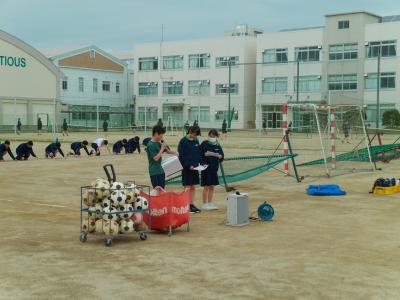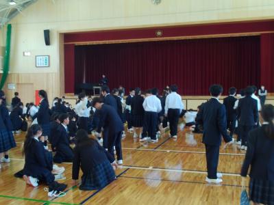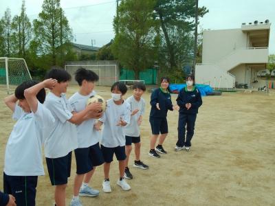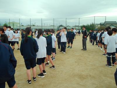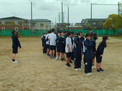 1年生が体育会で野外に向けて学年集会を拾いている頃、運動場いっぱいの大きな人の輪が作られていました。何をしているか、人だかりに近づいてみると、2年生が学年レクをしているところでした。中学2年生ともなると、学年レクもリーダーを中心に自分たちで企画、運営できるようで、「さすがだなあ」と頼もしく感じました。