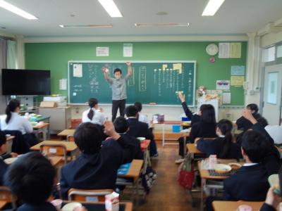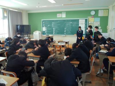 2年生は学級目標決めを行っているクラスが多くありました。全員が伏せていたので、眠っているように感じてしまいしたが、ちょうど多数決をとっているところでした。すばらしい意見が多い中、これを絞らなくてはいけないのは、惜しいことだと感じました。