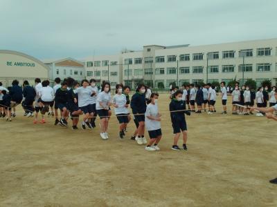 最終種目は、体育祭でも行う予定の「長縄跳び」でした。これからチームワークを高めて、どこまで記録を伸ばしてくれるのか、とても楽しみになってきました、「」2年生は7学級で、一番大人数の学年です。200人の心を一つに、多くの夢をかなえて切れるものと期待も膨らみます。