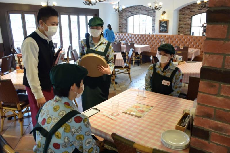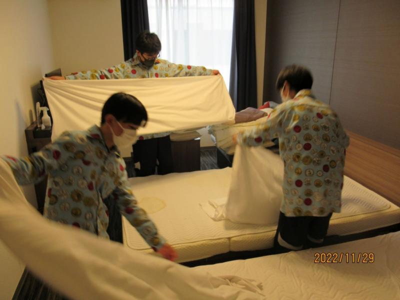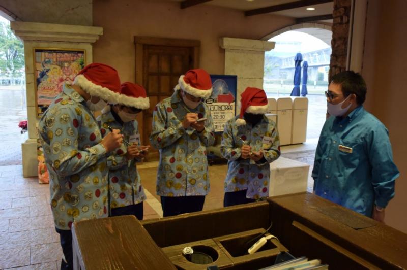 アトラクションの点検や入退場ゲートでのお客様の対応,レストランでの給仕,「変なホテル」でベッドメイキングの仕方を学ぶなどしました。体験を通してスタッフとゲストの2つの立場から働くことについて学びました。