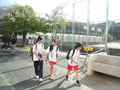 しばらくの間、改修工事のためグラウンドを使用することができない部活動は、場所を変えて活動します。ソフトテニス部は体育館前の小グラウンドで行いますが、軟式野球部とサッカー部、陸上競技部は、小学校のグラウンドを借りて練習を行います。軟式野球部は福岡小学校で、サッカー部は中野小学校で、そして、陸上競技部は磯部小学校でです。3つの小学校をめぐり、活動の様子をみてきました。どの部活動も自転車での移動は大変ですが、いつもより広く使えるグラウンドで、いつも以上に張り切って活動している様子に安心しました。各小学校のご厚意には、感謝いたします。