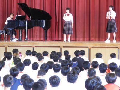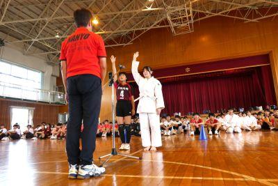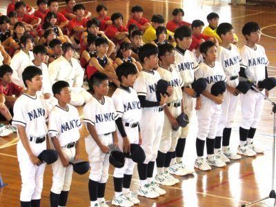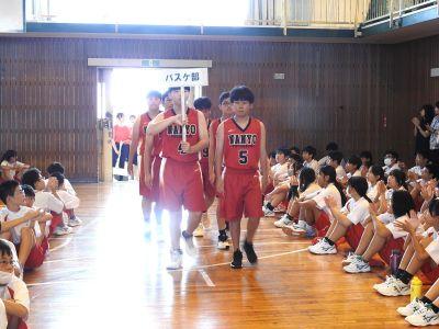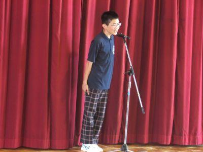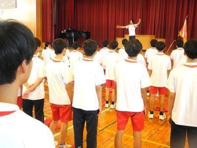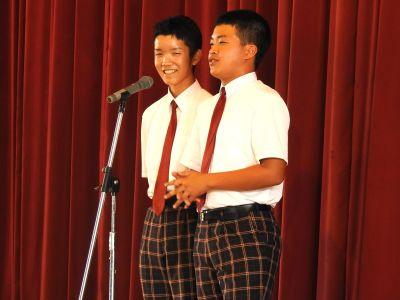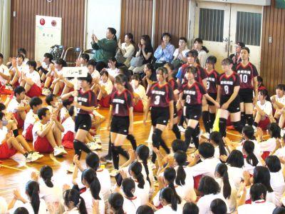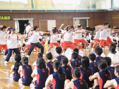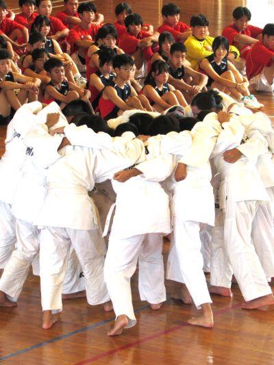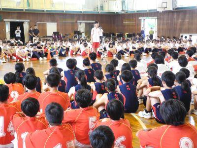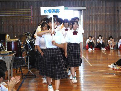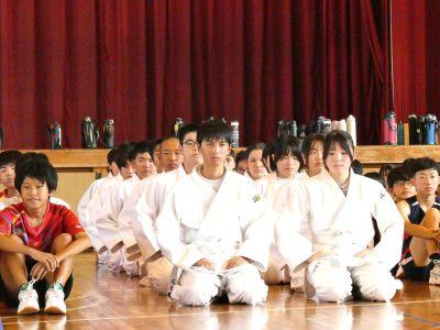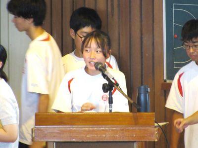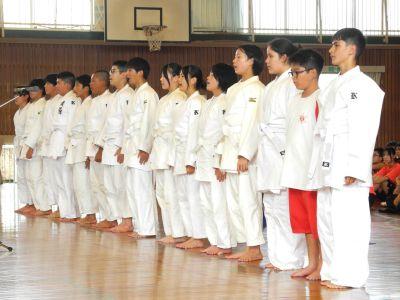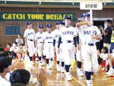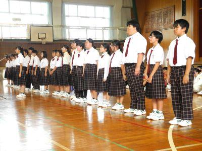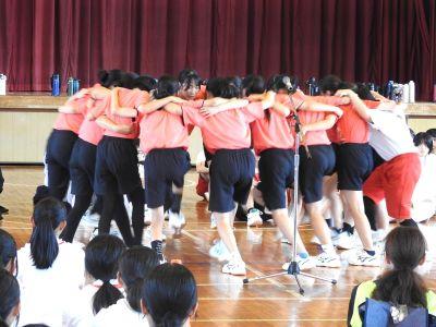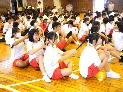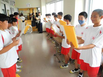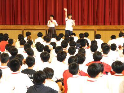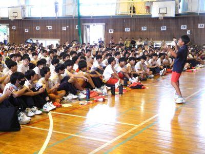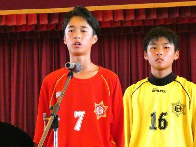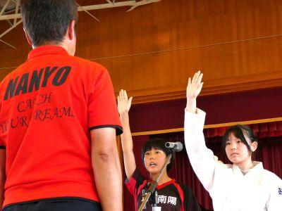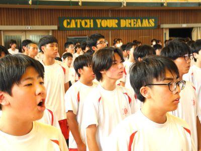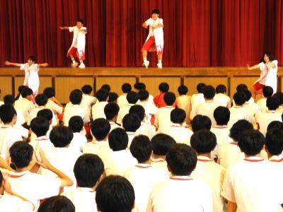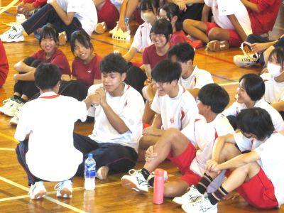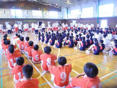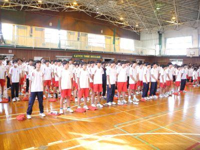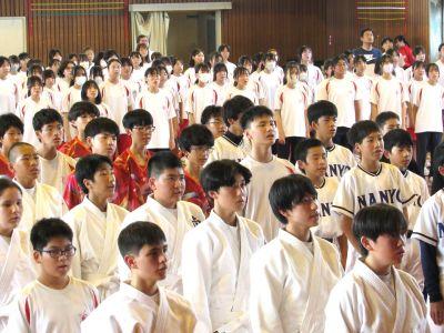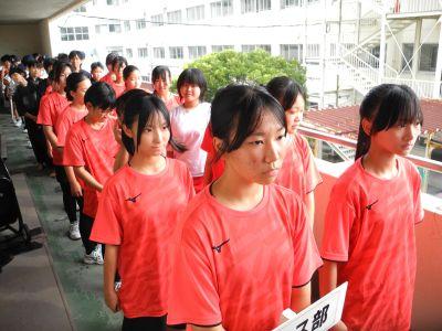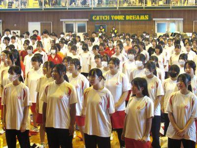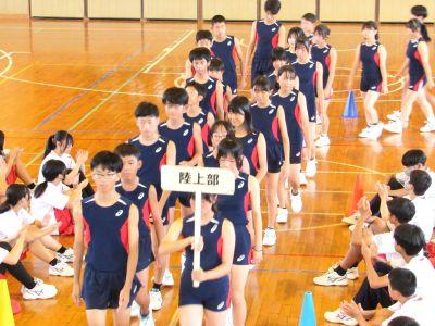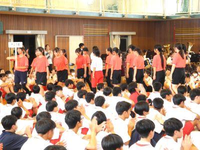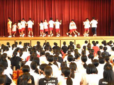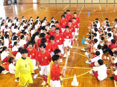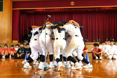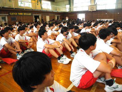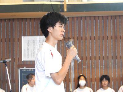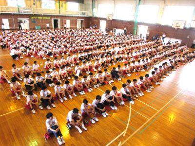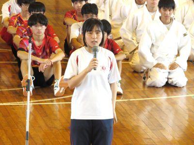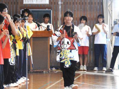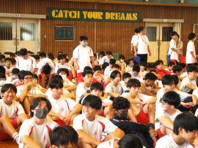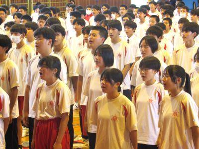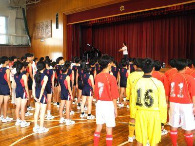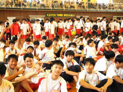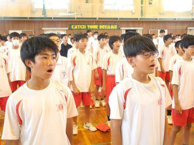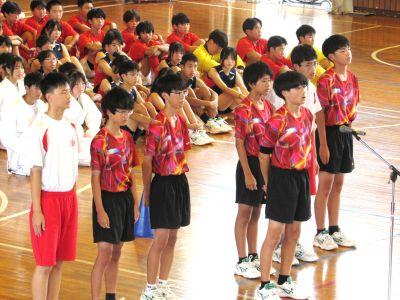 明日から各会場で行われる「市内新人体育大会」に向けて、『選手激励会』を行いました。夏の総体等で引退した3年生に見守られ、新チームとなる2年生・1年生の選手たちが、緊張とヤル気に満ちた表情で入場してきました。各部による「決意表明」や選手代表による「選手宣誓」から、大会に向けた意気込み(気合い)がひしひしと感じられました。また、3年生有志による「応援演舞」や3年生全員による「応援歌熱唱」から、3年生のこれまでの「感謝の思い」や後輩への「激励と引継ぎの思い」が強く伝わってきました。『激励会』を通して沸き起こる南陽中生徒全員の思いを込めた「盛大な拍手」や「校歌の歌声」で、みんなの『熱い思い』は選手たちに届いたと思います。大会での『全力のプレー』を期待して、心の底から応援しています。