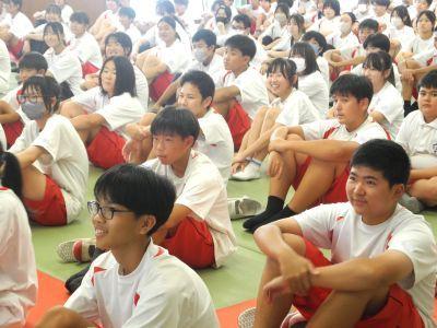 南陽中学校に、生徒たちのさわやかな挨拶と笑い声がもどってきました。記録的な連日の酷暑に翻弄された夏休みが終わり、2学期がスタートしました。登校する南陽中世の瞳は皆輝いており、充実した夏休みを過ごしてきたことと「2学期への意気込み」を感じました。体育館はとても蒸し暑かったですが、生徒たちは集中して話を聞いており、長くて行事も多い2学期が充実したものになる予感がして楽しみで仕方ありません。