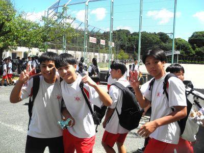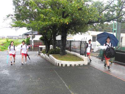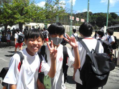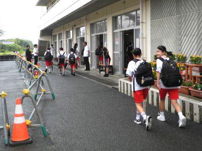 台風15号の接近により心配されましたが、朝の様子や情報から大きな影響もなさそうで、通常通り授業を行うことができました。とくに心配された登校時も、雨もほとんど降っておらず、傘をささずに登校する生徒が多かったです。今朝も南陽中学校の昇降口には、台風15号による曇天を吹き飛ばすような、元気でさわやかな挨拶が響き渡りました。午前中は暴風雨が吹き荒れる時間もありましたが、急速に回復して下校時には日差しが差し込んでいました。