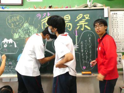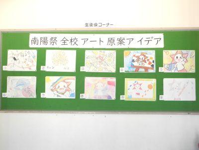 南陽祭の『全校アート』制作が、本格的に始まりました。1学期からこれまで、実行委員が図案の募集から投票、決定、そして、制作の準備をすすめてきましたが、全クラス一斉に、全員で分担して取り掛かりました。各クラス、実行委員を中心に、グループで協力し、超集中して、とても楽しそうに活動していました。今年の生徒会テーマは「キャンバス」!『全校アート』の完成、そして、南陽祭での披露がとても楽しみです。