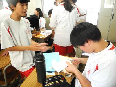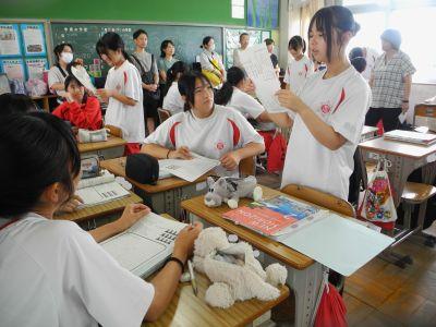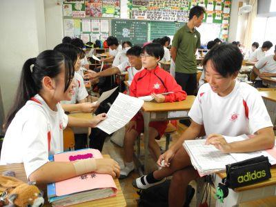 2~3限の授業を公開し、多くの保護者の方や地域の方が参観されました。小学校のように保護者の方を見つけると興奮することはありませんが、やはりうれしそうです。どの教室をのぞいてみても、いつも以上に張り切る生徒の姿がみられ、微笑ましかったです。大変お忙しいなか、来校いただいた皆様、本当にありがとうございました。