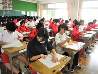 昨日から明日まで、期末テストです。南陽中の生徒たちは、定期テストにとても一生懸命取り組んでいます。テストが開始される直前まで、教科書やワークを見直し、開始のチャイムと同時に、問題用紙を一斉に開いて解き始めます。どの教室からも、どの生徒からも、緊張感が伝わってきます。あと1日、全力でがんばってください。