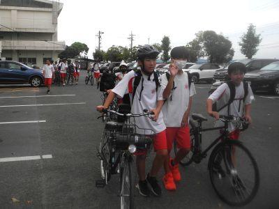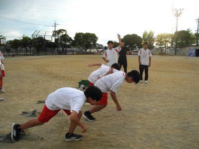 しばらくの間、改修工事のためグラウンドを使用することができない部活動は、場所を変えて活動します。ソフトテニス部は体育館前の小グラウンドで行いますが、軟式野球部とサッカー部、陸上競技部は、小学校のグラウンドを借りて練習を行います。軟式野球部は福岡小学校で、サッカー部は中野小学校で、そして、陸上競技部は磯部小学校でです。3つの小学校をめぐり、活動の様子をみてきました。どの部活動も自転車での移動は大変ですが、いつもより広く使えるグラウンドで、いつも以上に張り切って活動している様子に安心しました。各小学校のご厚意には、感謝いたします。