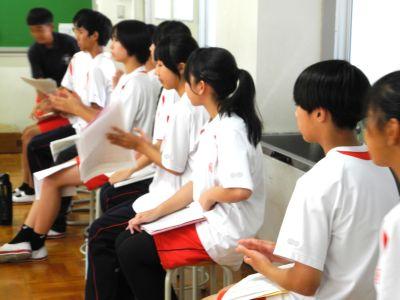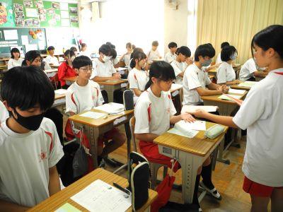 「おはようございま~す!〇年△組の▢▢に清き一票をお願いしま~~す!」登校時の昇降口は、立候補者の最後のお願いでとても盛り上がっていました。6限の選挙はこれまでとスタイルを変更し、「リモート演説会」&「教室投票」で行いました。体育館に全校生徒が集まらなくても、立候補者がカメラを通して演説する『被服室』、立候補者の思いを受け止める『各教室』、ともに大きな緊張感に包まれていました。どの立候補者も、自分の思いを堂々と話すことができ、南陽中をよりよくしたいという意気込みが伝わってきました。各教室での投票は、選挙管理委員の指示で、緊張した雰囲気のなか、終始無言で行われました。立候補した生徒の思いに対し、真剣に向き合う姿がみられ、「今後の生徒会活動にさらに大きな期待ができる!」と感じました。