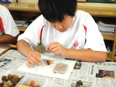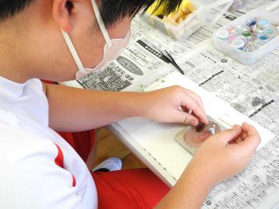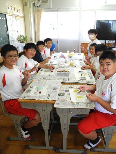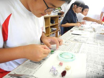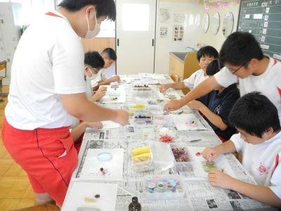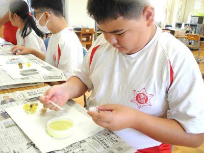廊下に漂うい~ぃ匂いにさそわれて教室に入ってみると、789組が『アロマワックスづくり』にチャレンジしていました。色彩を考え各自で材料を用意し、細かな作業に集中して取り組んでいました。完成した作品は素敵なものばかりで、789組のみんなのセンスのよさと、丁寧な作業を実感しました。10月18日(土)「伸びゆく子どもたちの作品展(豊橋まつり)」の即売コーナーで、このアロマワックスとシューキーパーを販売します。ぜひお店をのぞきに来てください!
