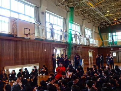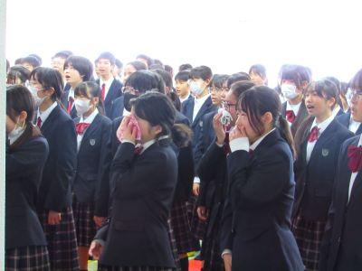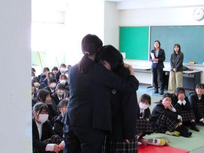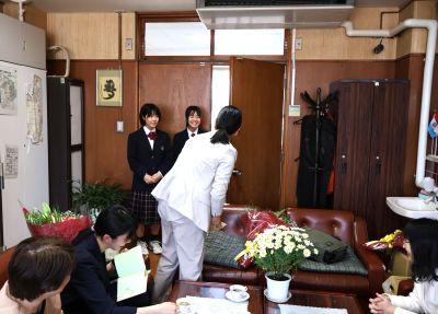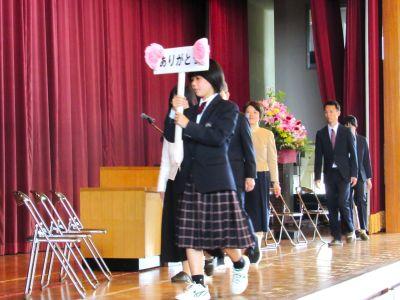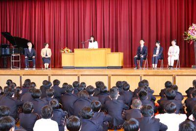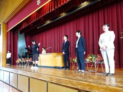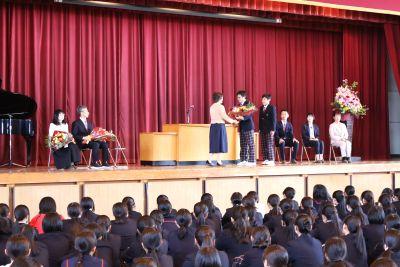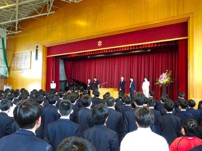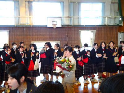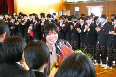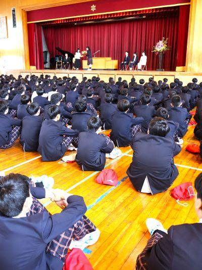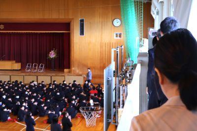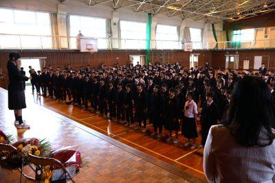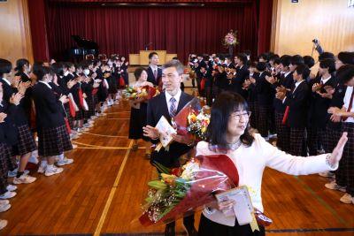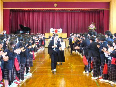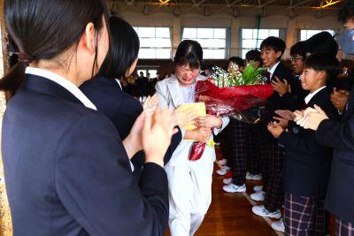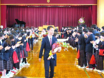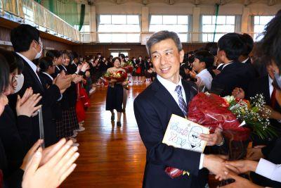 3月末の異動により南陽中を去られた6名の先生方をお迎えして、『退任式』を行いました。代表生徒による花束贈呈のあと、お一人お一人から言葉をいただきました。ユーモアあふれる言葉や想いのこもった言葉に、生徒たちも真剣な表情で聴き入っていました。『退任式』終了後も、各学年等で「第2部」を用意したり、部活動の時間に呼ばれて「第3部」を行ったり、生徒たちは時間のある限り、全力で感謝の気持ちを伝えていました。退任された先生方の新たな場所でのご活躍を祈るとともに、次にお会いするとき、今よりもっと素晴らしい「南陽中学」「南陽中生」になっているよう、みんなで進んでいかなければと強く感じました。