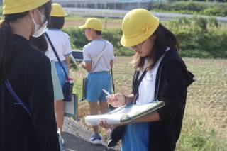 9月26日(木),6年生が総合的な学習の時間に,校区防災マップを作成に向け,3方面に分かれて校区の調査をしました。調査にあたっては,防災マップ作成のための専用アプリが利用できるタブレットを活用し,多くの消防団の方にも協力していただきました。子どもたちは校区を歩きながら,発災時に危険だと感じる箇所や防災設備を撮影したり,消防団の方に質問をしたりしながら調査を進めました。その後,消防団器具庫に集合した子どもたちは,消防器具の使い方を教えていただいたり,校区の防災に関する課題を質問したりしていました。今回,子どもたちが調査した内容は防災マップとしてまとめ,「小学生のぼうさい探検隊マップコンクール」に応募する予定です。