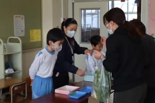 「やさいフレンドショップ」開店! 投稿日時 : 02/05 主担 2月5日(水),56組の子どもたちが「やさいフレンドショップ」を開店しました。地域の方からお借りしている学校前の畑で,子どもたちが栽培してきた冬野菜を収穫し販売しました。八百屋さんに模した教室には,かぶ,小松菜,大根,ホウレンソウなど,いろいろな種類の冬野菜を袋づめにし販売していました。子どもたちは,お店に訪れた「お客さん」の質問に答えたり,会計をしたりするなど,大活躍していました。 Tweet {{options.likeCount}} {{options.likeCount}} {{options.unlikeCount}} {{options.unlikeCount}} 0 コメント