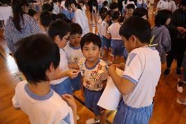 1年生のみなさん 野依小へようこそ 投稿日時 : 05/01 主担 4月25日1年生を迎える会がありました。6年生のお兄さん,お姉さんと手をつなぎ入場した1年生。入場門で名前を呼ばれると大きな声で「はい」と返事することができました。2~6年生の出し物では,野依小学校のことを紹介したクイズやゲームをして楽しい時間を過ごすことができました。6年生の手作りワッペンをいっぱい貼った1年生の子の笑顔が印象的でした。 Tweet {{options.likeCount}} {{options.likeCount}} {{options.unlikeCount}} {{options.unlikeCount}} 0 コメント