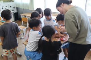 7月10日(水),登校してきた子どもたちが,東門の近くの植え込みの周りに集まっていました。何かいるのかなと,覗いてみると小さなカブトムシが地面を這っていました。先日は,小さなクワガタを門の近くで見つけました。「夏の虫」も活発に動き始め,いよいよ夏本番が近づいてきました。