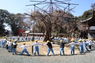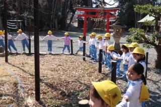 3月10日(月),1年生が野依八幡社へ校外学習に出かけました。まだ,しだれ桜のつぼみは固く,開花までにはしばらく時間がかかりそうでしたが,子どもたちは元気いっぱいとび回っていました。また,先生が「しだれ桜の周りを,手をつないで囲んでみよう」と呼びかけると,子どもたちは声を掛け合いながら精一杯手を伸ばして丸く囲んでいました。16日(土)の「野依しだれ桜まつり」では,つぼみがふくらみ開花した桜が見られることを願っています。