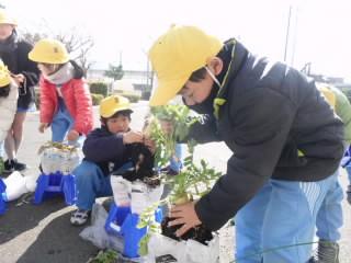 11日(火)には,卒業記念樹のハナミズキを,校舎南側の植え込みに植えました。来年の春にはきれいな花を咲かせてくれることを願っています。