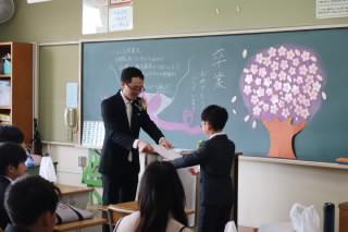 3月19日(水),第78回卒業証書授与式を行い,68名の子どもたちが野依小学校から巣立っていきました。卒業証書授与では,担任の先生から呼名されると,さわやかに,そして力強く返事をし,凛とした表情で卒業証書を受け取っていきました。卒業の歌「最後のチャイム」では,卒業生全員が心を合わせ,見事なハーモニーを響かせてくれました。式後,教室に戻った子どもたちは,友達や担任の先生との別れを惜しんでいました。
