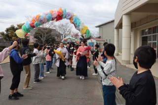 3月18日(火),明日の卒業式に参加しない1・2年生が,短縮授業で下校する6年生を,アーチをつくって送り出しました。1・2年生がつくるアーチを,背中をかがめ歩いていく6年生。1・2年生から感謝の言葉をかけられ照れくさそうにしている子もいましたが,春を感じる日差しを浴びながら笑顔で学校をあとにしました。1・2年生の皆さん,ありがとうございました。