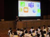 12月10日(水)野依タイムの児童集会は運動委員によるテレビ放送による発表でした。短縄強化月間(なわとび検定)についての説明を聞きました。運動委員から、縄跳び上達のためのこつを映像で紹介してもらいました。