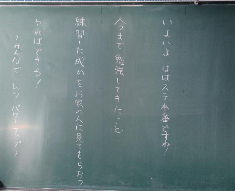どの教室からも、今日まで頑張ってきた練習の成果を学級のみんなが100%発揮してほしいという担任の先生の思いが伝わってきました。