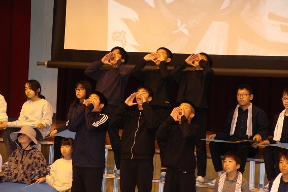 最後の演目は、観客の皆さんが楽しみにしている全校合唱です。全員の気持ちを一つにした歌声が体育館に響き渡り、心にしみました。