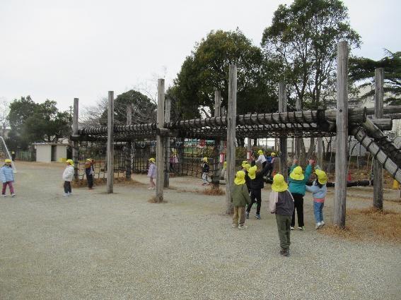 お隣の老津っ子、老津保育園の年長児が小学校の運動場に遊びに来ました。保育園よりも広い運動場、大きな遊具に子どもたちは大喜びです。様子を見に行くと、みんなとっても元気に挨拶をしてくれました。